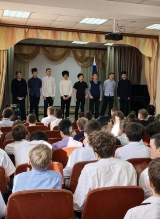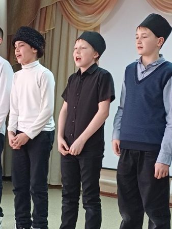 Большим сюрпризом для дорого гостя стала задорная песня в исполнении семиклассником «Казаки в Берлине».