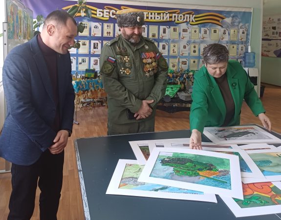 В рамках встречи Евгению Юрьевичу была представлена выставка военной техники, созданная руками наших талантливых ребят. Он с интересом осмотрел экспонаты, а также обратил внимание на рисунки военной тематики, подготовленные к выставке. Особое впечатление на гостя произвела “Парта Героя”, символизирующая память о подвигах выпускников Центра.