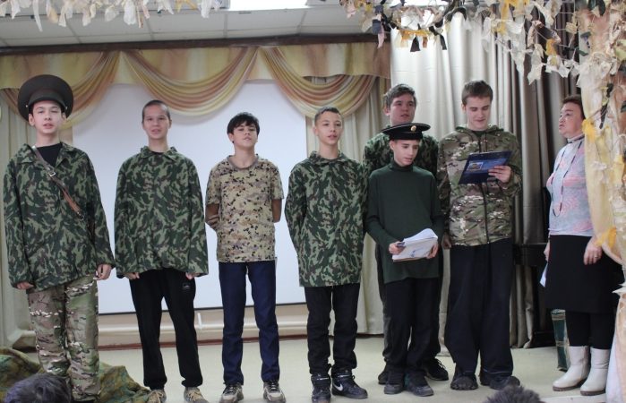 Они рассказали о нашем выпускнике Борисе Кувшинове, который окончил в Центре 9 классов, освоил профессию токаря и добровольцем ушел воевать на СВО. Выступление получилось ровное, динамичное, не было монотонности, ребята громко и четко доносили свой текст до слушателей. Хорошо были подобранны костюмы, а особенно военные каски. Чувствовался серьезный настрой мальчиков, каждый проникся теми событиями. Удачно вплетались в общий контекст видео зарисовки, документальные интервью самого Бориса. Музыкальное сопровождение было подобрано хорошо и уместно. Выступление группы токарного дела выглядело достойно. Хочется выразить благодарность педагогам, работающим с группой – Валерии Владимировне Заволодько и Виктору Анатольевичу Голубю за совместное творчество с детьми и прекрасный результат.