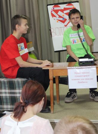 На сцене было много активных действий. Находкой в их выступлении можно назвать появление персонажа, противопоставленного группе волонтёров, которая искала для себя выгоду. Но группа волонтёров показала своими действиями, что они так не могут поступать.