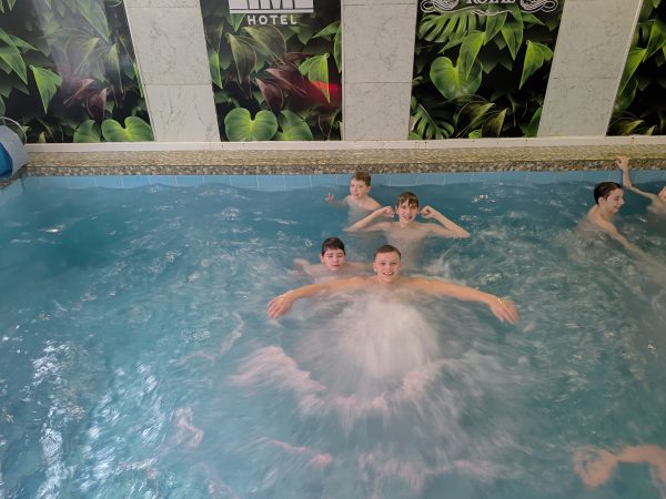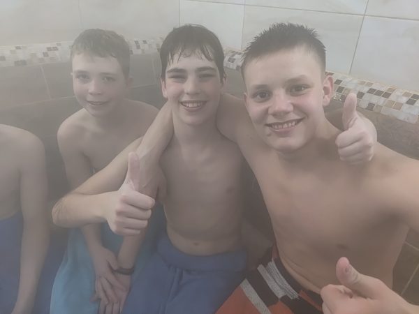 Потом мы вылезли и пошли в хамам. Мы посидели, поразговаривали, вышли, поплавали, и нам сказали: «Пошлите пить чай». Там было очень много всего вкусного. Мы пили горячий шоколад, кушали бутерброды с вкусной рыбкой, сладости, торт. Спасибо большое спонсорам за такие поездки. Мне очень и очень понравилось.