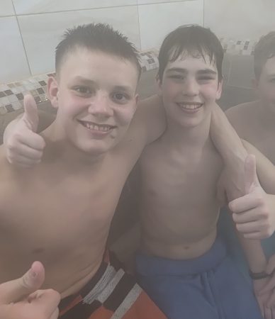 Я играл в бильярд, мне понравилась в сауне – было жарко. В хамаме тоже было интересно и прикольно. Я прыгал бомбочкой в бассейн, кушал блины со сметаной, вафли, печенье и орешки. Мне было жарко, а потом, как я пригнул в бассейн, мне стало хорошо. Бассейн был нормальный, с подсветкой и в середине были пузыри. Потом заходил в хамам, минут 20 сидел, обливался в холодной воде, а потом ложился на лавку спиной, такой кайф был! Мурашки по коже! Я был в бане первый раз, короче мне понравилось, поехал бы ещё! Торт был очень был вкусный! Спасибо спонсорам, что организовали поездку, а Александру Геннадьевичу спасибо, что меня взял.