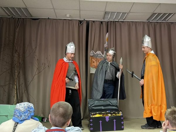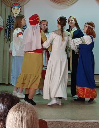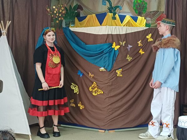 В завершающий день программы ключевого дела «Братских народов союз вековой», мы посмотрели вступление 8А класса. Ребята показали сказку – притчу «Сказ о  том, как солнце воротилось».  В постановке, по задумке педагогов классного руководителя Елены Владимировны Петлеванной и воспитателя Марины  Викторовны Ежовой, затронута тема дружбы и объединения народов, проживающих на огромной территории нашей страны, перед наступившей бедой.