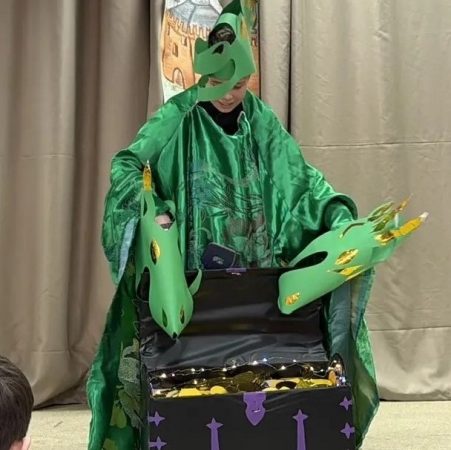 Наше ключевое дело называлось «Богатырская сила наша». Я играл 2 роли – Змея Горыныча и Соловья разбойника. Я считаю, что справился со своей ролью. Понял, что у меня получается хорошо выступать. Мне очень понравилось наше ключевое дело.