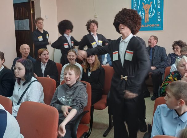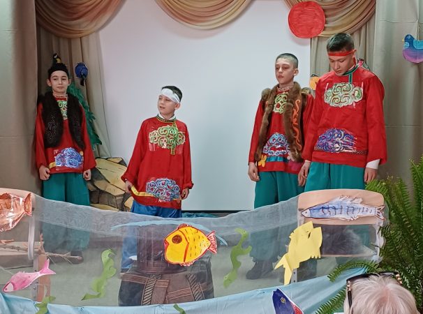 Первыми выпала честь выступить учащимся 6А класса, где воспитатель Губанова Оксана Марсовна и классный руководитель Юлия Викторовна Подволочкина. Они решили представить народы, населяющие Хабаровский край, родное Приамурье: нанайцев, нивхов, ульчей. Спектакль по мотивам нанайской сказки «Как Бельды воевать перестали» получился на редкость ярким, красочным и живым. Ребята в этом классе веселые, смелые, жизнерадостные, как и сама Оксана Марсовна. Особенно хорошо выступили Мирослав Закоморный (Чубак), Крутов Саша (китайский император), Бородин Артем (Нойон). Ребята и станцевали, и спели красиво. Гости, участники курсов, проходивших на базе нашего учреждения, были очень довольны.