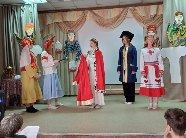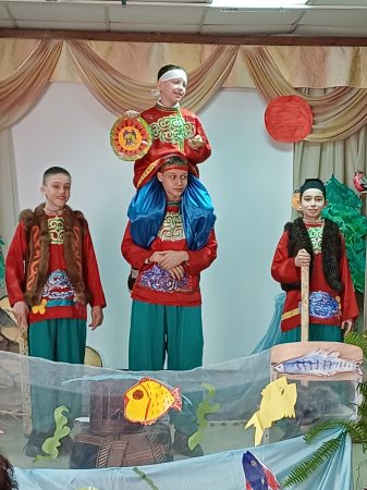 Наша группа выступила со спектаклем-сказкой про единство народов. Дмитрий Владимирович нам раздал текст, и мы все вместе обсуждали его и что-то убирали и добавляли свое. После мы распределили роли.