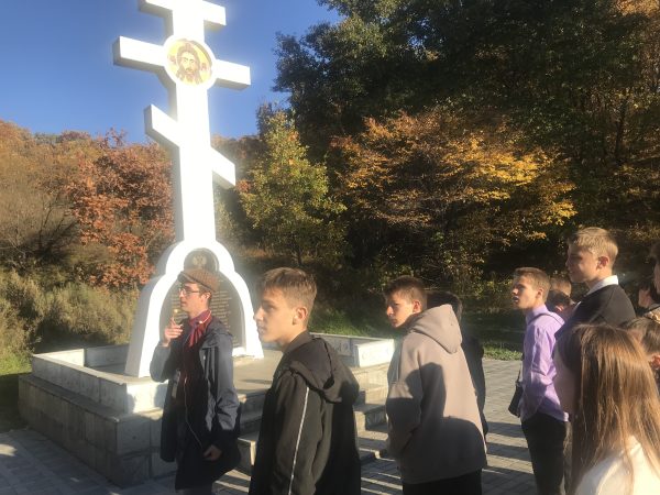 …Потом нас ждал Всеволод и повез нас по городу. Показал нам памятники казакам-первопроходцам в Благовещенске. Этот памятник поставили в 1856 году. Потом мы смотрели памятник, который установлен в честь подписания Айгунского договора в 1858 между Российской империей и Цинской империей. Этот договор определил границу по реке Амур. Следующим этапом мы поехали к собору. Экскурсия была очень интересной, много нового узнала.