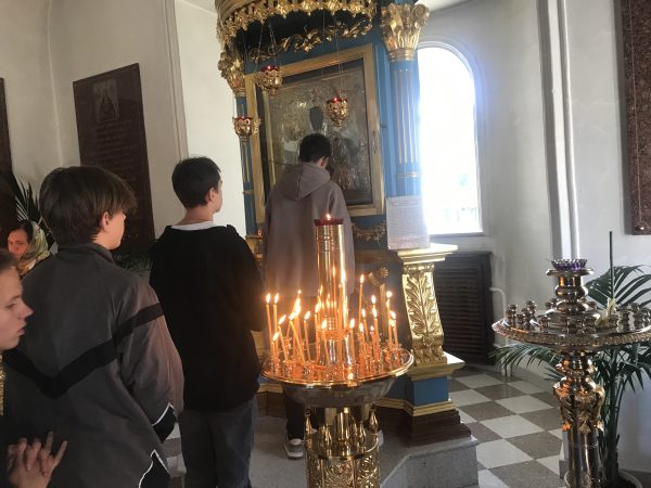 …В последний день мы пошли в Кафедральный собор на службу. Собор был очень красивый. Мы исповедовались, причастились и приложились к иконе Албазинской Божьей Матери, помолились за наших спонсоров-благодетелей. Мне очень понравилось стоять в храме, в котором была чудотворная икона Албазинской Божьей Матери.