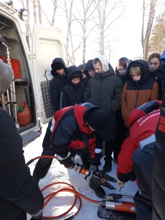 Дети узнали, как используется во время спасательных операций бензопила и гидравлический насос, также был продемонстрировано оборудование и снаряжение, которые используются при спасении утопающих на воде и даже подо льдом в зимний период, зачастую это рыбаки или неосведомленные дети, провалившихся под лёд.