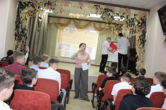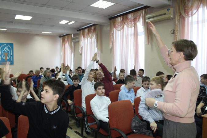 Виктория Васильевна Могорычева вела разговор с детьми и присутствующими педагогами о «Юных ополченцах Донбасса». Во время утренней встречи подростки говорили о том, как важно быть патриотом своей страны и в любой момент встать на ее защиту. Рассказ Виктории Васильевны о детях и подростках-ополченцах никого не оставил равнодушным, а отрывок из фильма «Герои ополчения», в котором юные герои лично рассказывали, как они стали ополченцами, и почему решили стать участниками спецоперации, никого не оставил равнодушным в зале.