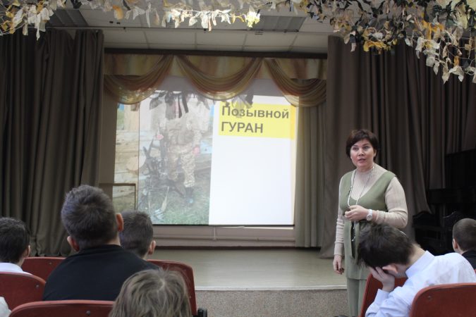 Оксана Валерьевна Гайнутдинова подготовила утреннюю встречу на тему: «Моторола – жизнь на линии огня». Ребята узнали, что Моторола – это простой парень, который рано остался без родителей. Работал простым мойщиком машин, но как только узнал о тяжёлой ситуации на Донбассе, тут же взял билет на поезд и приехал.
