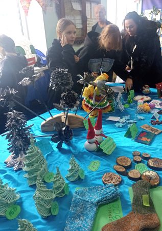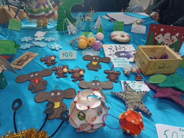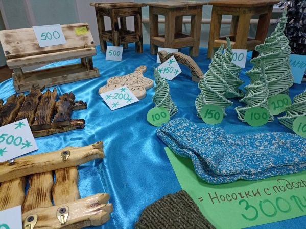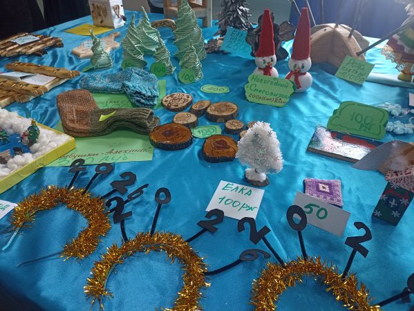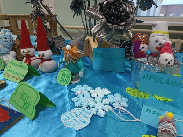 Самые маленькие таланты из младших классов проявили фантазию, создав целую галерею сказочных персонажей. Чебурашка, веселый снеговик и, конечно же, всеми любимый Дед Мороз – эти очаровательные поделки принесли на ярмарку атмосферу детской радости. Оригинальные открытки, выполненные ребятами 7А класса совместно с социальным педагогом Галиной Сергеевной Калининой стали настоящим украшением Новогоднего прилавка. Настоящий фурор произвели изящные розы и грациозная ель из металла – творение умельцев из группы «Слесрное дело». Не остались в стороне и ребята из группы «Автодело», которые представили оригинальные елочки из бумажной лозы, добавив праздничного настроения. А бабушка нашего ученика Алихана, проявив заботу и тепло, связала две пары уютных носков, которые, несомненно, согреют кого-то в холодные дни.
