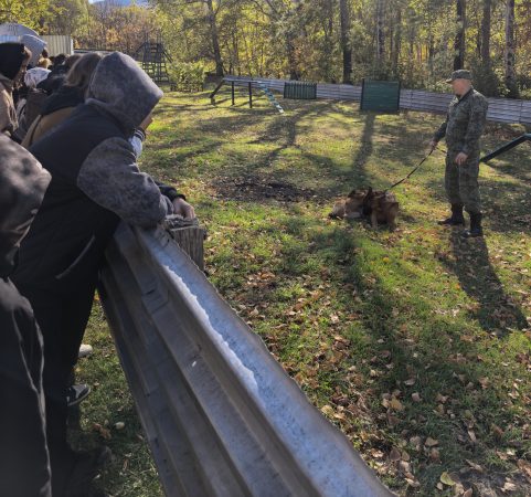 Именно здесь они узнали о важной профессии кинолога и засыпали пограничников вопросами: «А какие ещё породы служат на границе?», «Чем их кормят?», «Сколько лет служит собака?».