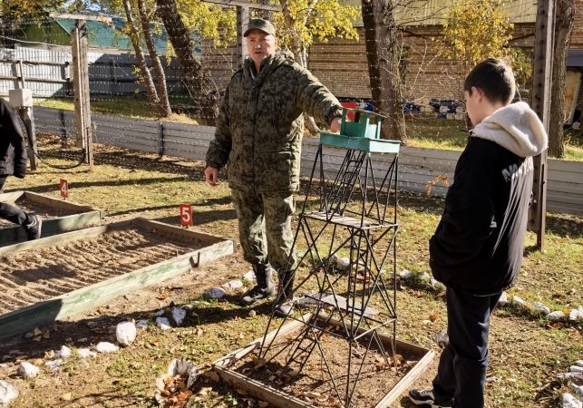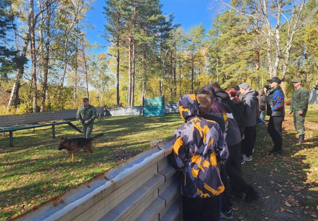 Первая группа под руководством Анатолия Федоровича отправилась на «дром» — учебный полигон, где пограничники отрабатывают своё мастерство. Там мальчишки и девчонки с интересом изучали следы и всевозможные хитрости, на которые идут нарушители границы,