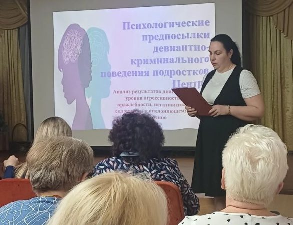 Педагог-психолог Л.В. Косенко углубилась в психологические предпосылки отклоняющегося поведения. Она представила коллегам результаты диагностики уровня агрессивности и склонности к девиации на примере воспитанников Центра.