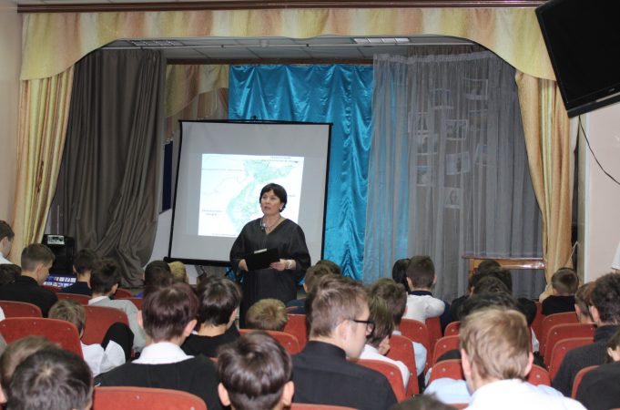 Валерия Владимировна Заволодько, учитель географии и биологии, открыла ключевое дело утренней встречей о создании Русского географического общества, его истории. Она рассказала о Константиновской медали, о современной миссии РГО.