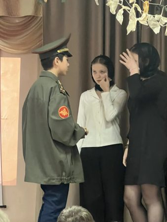 Юные артисты продемонстрировали зрителям мужество и отвагу, присущие настоящему защитнику Отечества. Эмоциональная игра ребят затронула души зрителей, вызывая искреннее сопереживание судьбе их персонажа. Особую роль, мать главного героя, сыграла мама одного из учеников. Многочисленная публика внимала каждому слову с интересом и уважением. После завершения выступления актеры были удостоены громких аплодисментов.