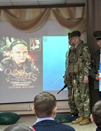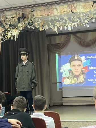 Спасибо большое за выступление 8А класса. Ребята вместе с классным руководителем Еленой Владимировной Петлеванной и классным руководителем Мариной Викторовной Ежовой представили авторскую экспериментальную поставку о выпускнике Центра, награжденном Орденом Мужества посмертно, «Памяти защитника Отечества Максима Гейкина посвящается…».