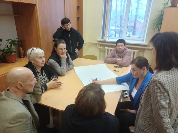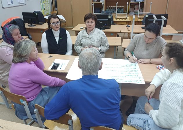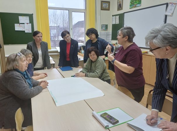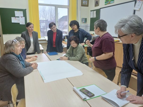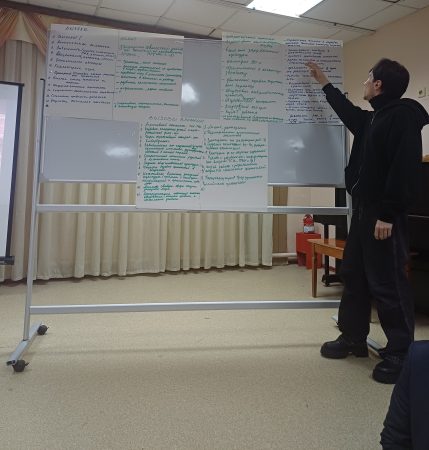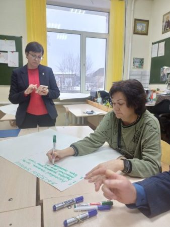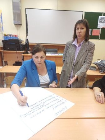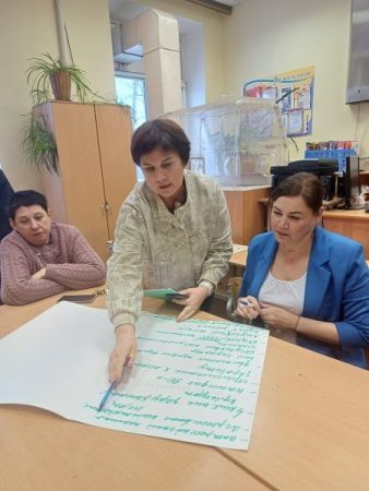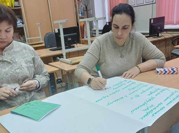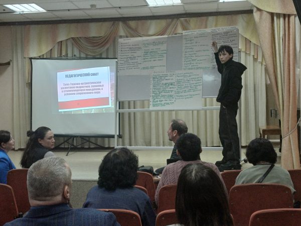Интерактивная часть педсовета проходила в форме «вертушки». В трех проблемных группах педагоги обсуждали вызовы (риски) современного мира и пути их преодоления. Каждая группа после обозначения вызовов передавала их другой группе, получив соответственно наработки от своих коллег, и определяла пути преодоления вызовов (рисков) по новому тексту.