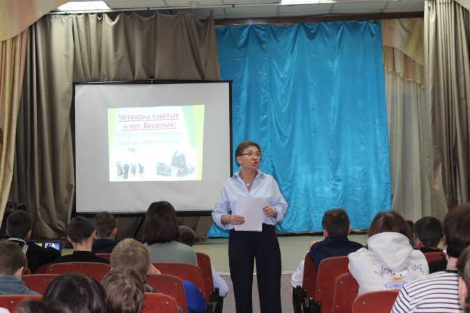 Во вторник выступала Елена Владимировна Петлеванная, учитель математики, которая посвятила свое выступление путешественникам Русского географического общества.