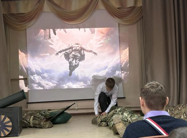 Учащиеся 6А класса со своими педагогами Оксаной Марсовной Губановой, Юлией Викторовной Подволочкиной и психологом Ириной Александровной Гаврись представили зрителям спектакль, посвященный личности современного героя – военкора СВО Владислава Татарского.