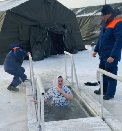 И вот, один за другим, смельчаки погружались в ледяную воду иордани, следуя древней традиции.