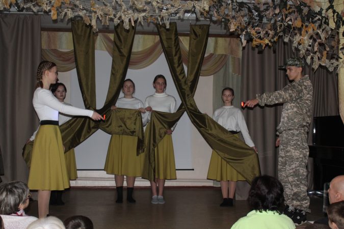 Выступление 9А класса в ключевом деле было интересно режиссёрски поставлено. Во-первых, много информации о войне, где патриоты нашей Родины, пройдя через трудности, лишения военных дорог, ценой своей жизни, погибая, в молодом возрасте, стоят до конца, веря в победу и справедливость. Знали герои, что за ними правда, люди, народ, за ними вера и Бог. Было много костюмов, ребята показали настоящий бой, хорошо сыграл роль бойца «Моторола» (Арсен Павлов) Саша К. Ярко сыграл героя позывной «Гиви» (Михаил Толстых) Никита З., очень правдоподобно передал характер своего героя. Абсолютно бесстрашные воины, взяв автомат, защищали Донбасс от фашистов. Выпускникам удалось передать весь настрой, героизм, весь зов души.