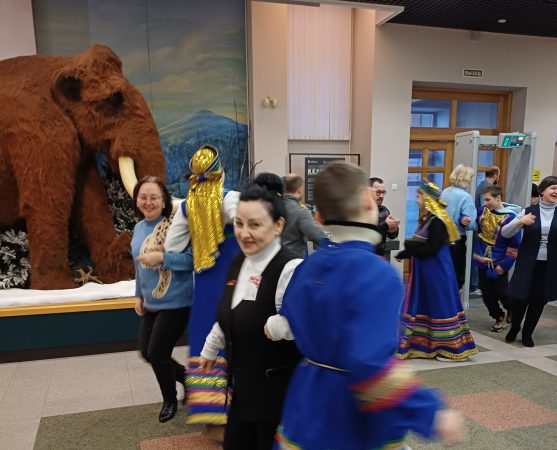 Казалось, что в дружном хороводе вместе с детьми и сотрудниками музея сейчас закружатся мамонты и динозавры.