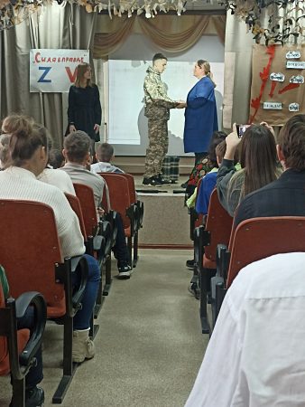 В актовом зале просмотрели фрагмент ключевого дела «С любовью, с надеждой и с верою встанем. Сегодня, как прежде, СВОих не бросаем!».
