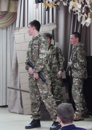 Мне очень понравилось наше выступление, я думаю и преподавателям, которые нас готовили к этому представлению, тоже очень понравилось. Я был в роли снайпера с позывным «Тучка». Я очень благодарен: Виктору Анатольевичу (нашему папе), Валерии Владимировне (нашей маме). Я вынес из этого большой опыт, как правильно готовиться, и как сложно людям, которые там за нас воюют. Когда мы готовились к этому выступлению, мы мечтали, чтобы, когда закончится наше выступление, закончилась и война.