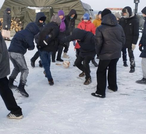 Прежде чем окунуться в иордань, нужно было как следует разогреться! И что может быть лучше для этого, чем активные игры на свежем воздухе? Ребята с удовольствием размялись, устроив настоящий футбольный матч прямо на льду.