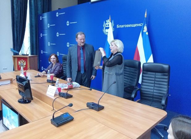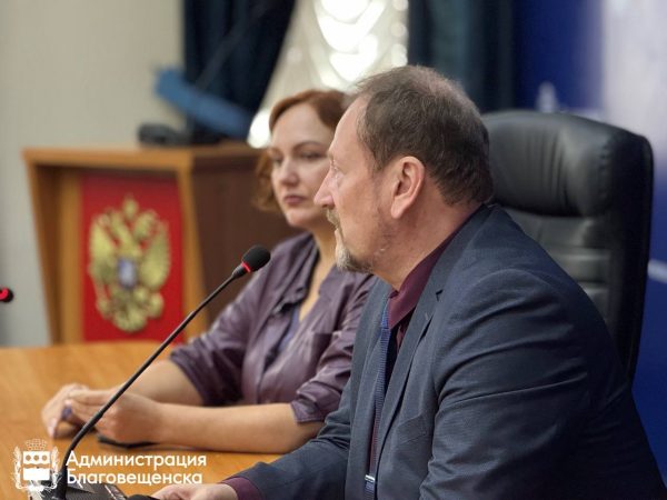 По приглашению администрации г. Благовещенска в рамках образовательной экспедиции воспитанников на космодром «Восточный» и по достопримечательностям Амурской области директора благовещенских школ встретились с руководителем Хабаровского краевого центра педагогической реабилитации А.Г. Петрыниным.