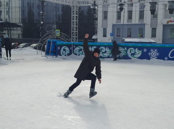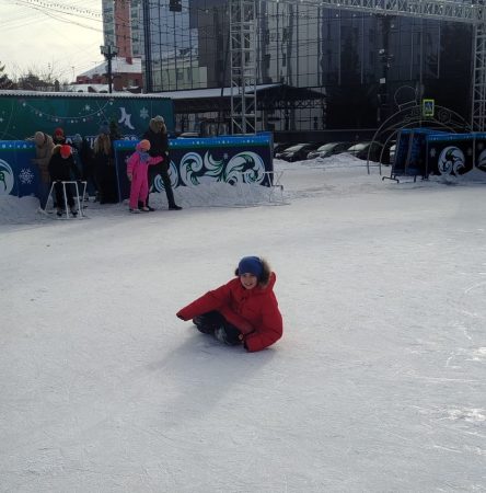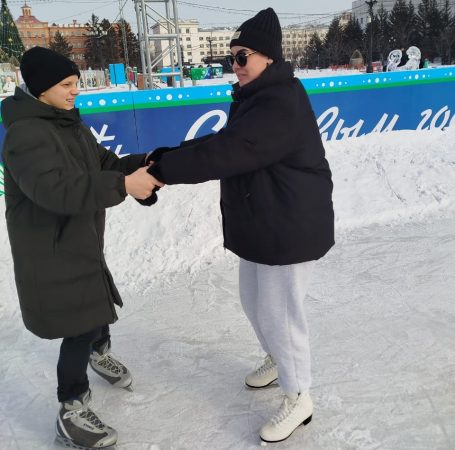 Ребята, проживающие в интернате при Центре, отправились на каток главной площади города. Мальчишки оказались на морозном воздухе, веселились и осваивали ледовые просторы.