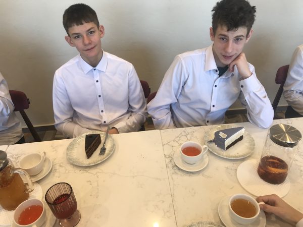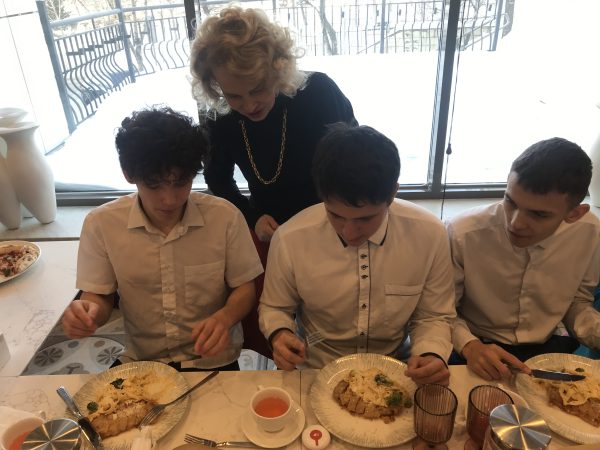 Потом нам принесли потрясающий десерт – торт. Он был с орехами. Приветливые официанты о нас заботились. А пока мы кушали, Ольга Владимировна рассказывала про этикет. Я хочу сказать огромное спасибо Ольге Владимировне, официантам и поварам.