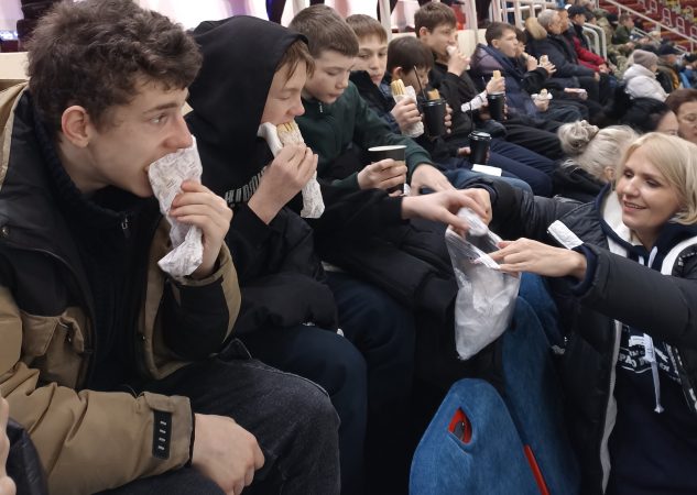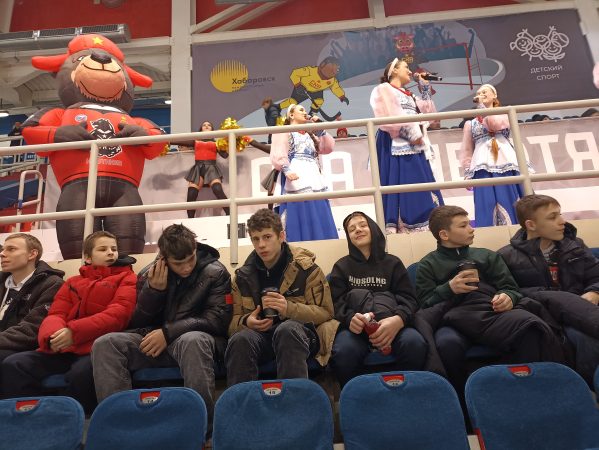 В этот раз ребята отправились в Ерофей Арену, чтобы поддержать домашнюю команду СКА-Нефтяник. С первых же шагов в грандиозном спортивном комплексе мальчишек поразили его масштаб и величие. Для Ивана Б., который оказался здесь впервые, все вокруг казалось удивительным и захватывающим.