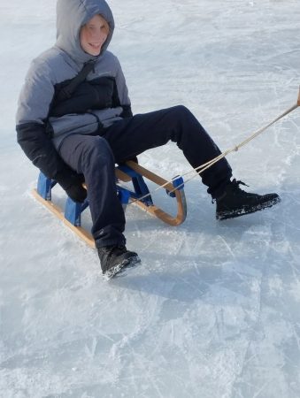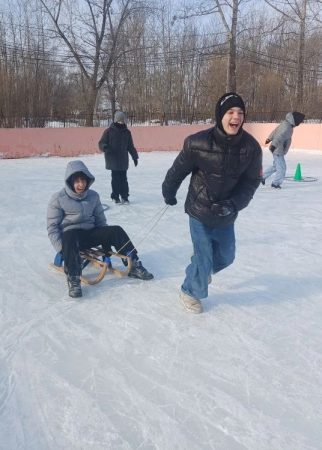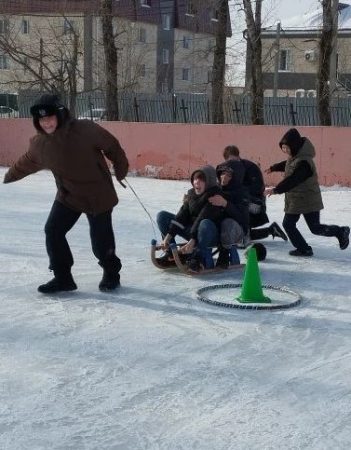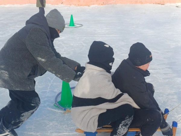 Матвей Б. вместе с другими ребятами в роли рулевых на санях в каждый поворот аккуратно и четко въезжали без заносов – этим и определили победу в эстафете на санях.