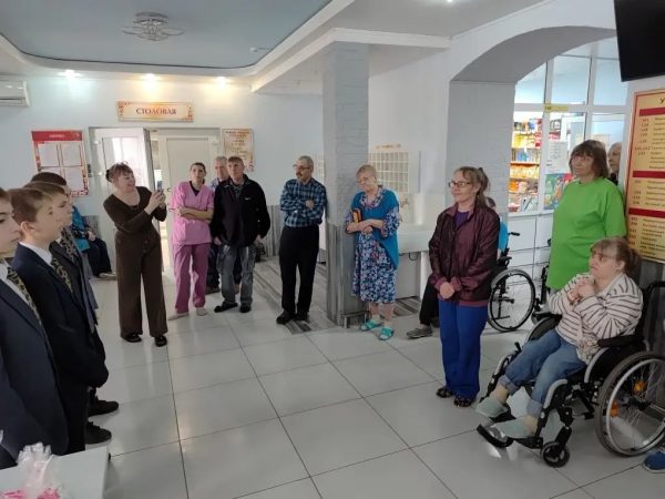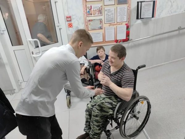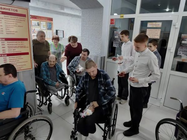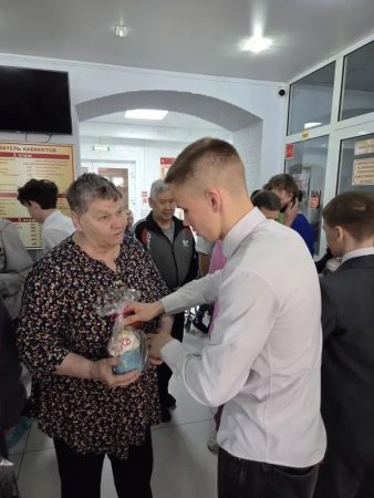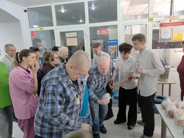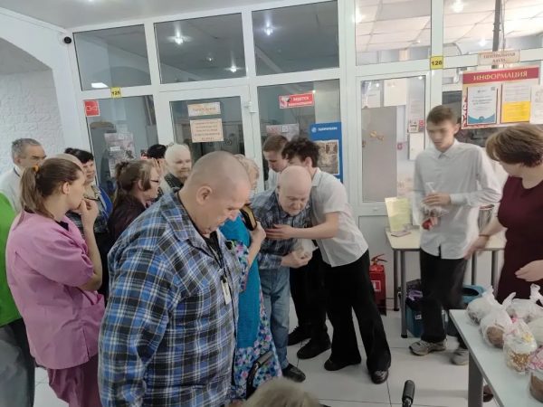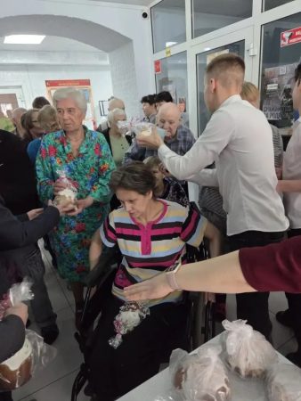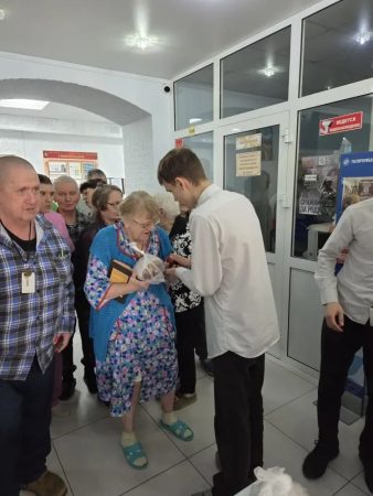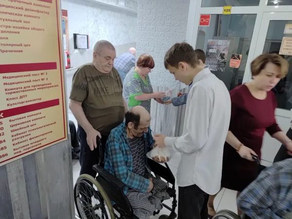 Кроме поздравления с Пасхой, воспитанники Центра часто приезжают к постояльцам для совместных прогулок и общения, с праздничными концертами и субботниками.