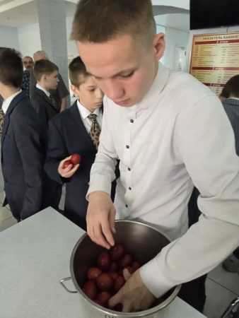 В преддверии Светлой Пасхи повара Центра приготовили традиционные куличи, ребята же, воспитанники интерната при Центре вместе с воспитателями красили яйца, учили стихи. На праздничной службе куличи осветили в Храме Александра Невского.