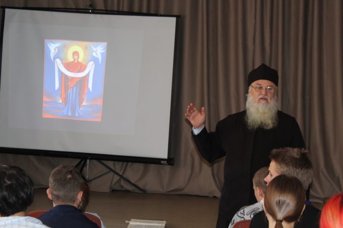 Встречу он начал с вопроса: «А знаете ли вы, кто такая Пресвятая Богородица?». Ребята наперебой отвечали: «Это мама Иисуса Христа, самая добрая и заботливая мама на свете!», а Мирослав ответил: «Она очень любит всех нас и всегда готова помочь».