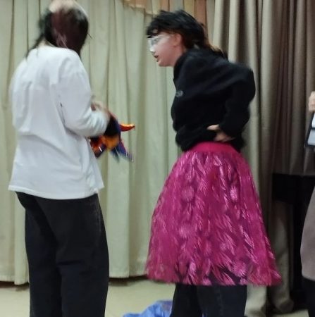 На празднике было много интересных конкурсов. Например, ученики вытягивали из шляпы бумажки с названиями частей тела. Задача была простая, но требовалось реакции: быстро дотронуться до указанной части. Однако главный подвох заключался в том, что другие ребята должны были назвать, какая это часть тела. Со стороны это выглядело забавно, особенно когда дети касались одной рукой носа, а другой держались за пятку.