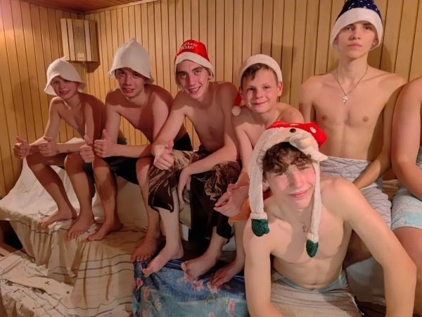 …Мы ездили в гости к Губернатору, потому что мы заслужили. Нас встретила жена Губернатора Наталья Анатольевна. Она нас проводила на костер, там, где нам жарили рыбу. Мы постояли у костра, потом мы пошли в здание, оно внутри было очень красивое и по-Новогоднему украшено. Потом нас старшие отвели в баню, мы попарились и начали выходить. Помылись и пошли в бассейн, потом мы еще много раз ходили в баню, с нами парился мастер спорта по дзюдо. Потом, когда я вышел, мне посоветовали облиться холодной водой и лечь на простынку. Я облился, и у меня пошли мурашки по всему телу. Так здорово!