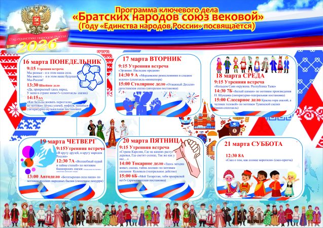 С 16 по 21 марта в Центре пройдет ключевое дело «Братских народов союз вековой», посвященное Году единства народов России.