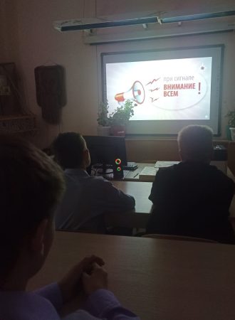 Уроки начались с разбора главного сигнала, оповещающего о любой внештатной ситуации – «Внимание всем!». Ученикам напомнили, что этот сигнал представляет собой протяжный завывающий звук сирен, гудков предприятий и других сигнальных средств. Преподаватели подробно объяснили, что, услышав такой сигнал, необходимо: