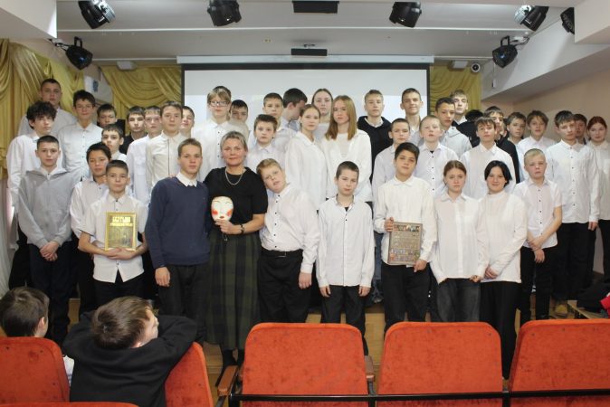 По окончании встречи ребята из группы «Токарное дело» преподнесли гостье подарок-маску из гипса, выполненную своими руками. Фото на память стало завершением встречи.