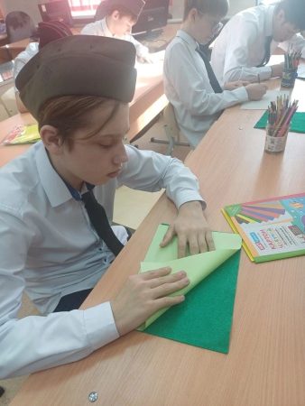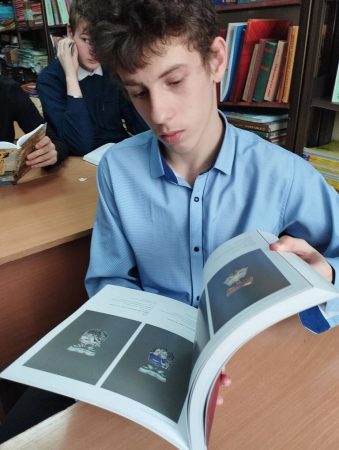 9А класс в преддверии Дня защитника Отечества превратил библиотеку в настоящий штаб. Вместе с воспитателем Ольгой Владимировной Жулиной и педагогом-библиотекарем Валерией Владимировной Заволодько они отправились в путешествие по страницам военной истории. Самым увлекательным оказалось знакомство с военными наградами. Валерия Владимировна устроила настоящую выставку и рассказала, за какие подвиги вручали ордена и медали. Теперь подростки не просто знают названия, но и понимают цену этих символов мужества.