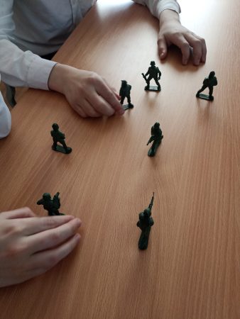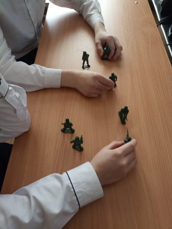 По окончанию ребятам было предложено воспроизвести известные баталии, перемещая игрушечных солдатиков на воображаемом поле.