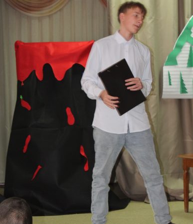 В творческой форме парни из группы токарного дела показали работу исследователей вулканов. Интересной режиссерской находкой стал показ извержения, когда потоки красной магмы «заливали» поверхность черной горы