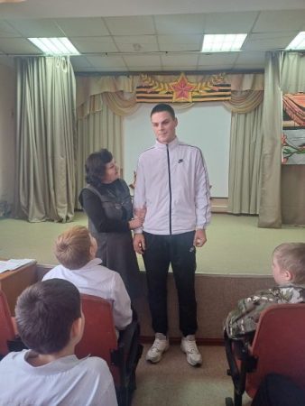 Дмитрий рассказал ребятам о своей службе, о тех ситуациях, с которыми пришлось столкнуться на войне. Все слушали, затаив дыхание. Ведь многим скоро предстоит служить в армии, и рассказ своего старшего товарища очень важен для наших ребят – будущих защитников Родины.