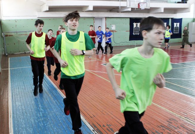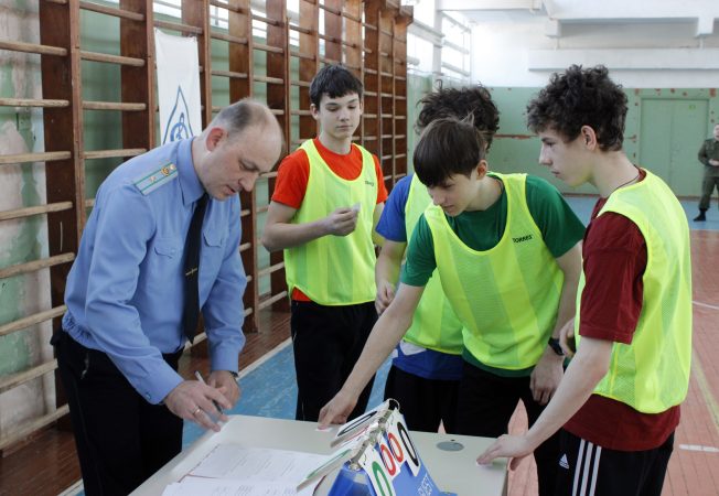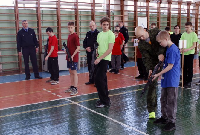 Встречал ребят подполковник Анатолий Фёдорович Арзамасов, который сразу же взял курс на спортзал.