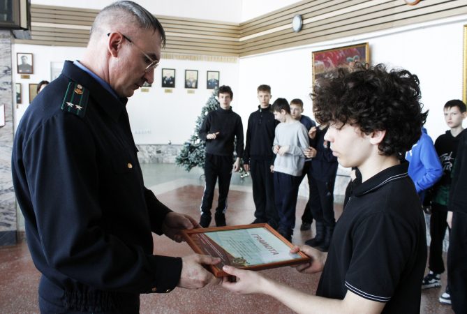 В рамках празднования Дня защитника Отечества в Пограничном управлении ФСБ России по Хабаровскому краю и Еврейской автономной области сложилась добрая традиция – встречать самых юных и энергичных гостей. Накануне праздника стены ведомства распахнулись для воспитанников нашего Центра, чтобы мальчишки могли не только прочувствовать дух пограничной службы, но и проверить себя на прочность в честной спортивной борьбе.